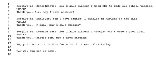 Note the righteous mustache on the schoolmaster in the above actual photograph of a young, brash developer who thought it would be a good idea to use a Turing-complete scripting language to generate HTML code for the school website. That might be his classmate, Alan Turing, off to the left, also in trouble for egging him on.